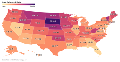 | State | Deaths | Age Adjusted Rate | Rank | Percentile |