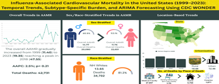 Citation: Dr. Faizan Ahmed , Muhammad Abdullah, Bilal Qammar, Madeeha Shafqat, Anika Goel, Muhammad Shees Hunain, Muhammad Faizan Tahir, Tehmasp Mirza, Haris Bin Tahir, Mohammad Bakr, Swapnil Patel, Amir Hossain, Fawaz Alenezi. Is Influenza an Underrecognized Driver of Cardiovascular Mortality in the United States? A 25-Year Comprehensive Subgroup Analysis of Epidemiologic Trends, Disparities, and ARIMA-Based Mortality Forecasting (1999–2023), J Clinical and Medical Research and Studies, V (5)I(1), DOI: 1